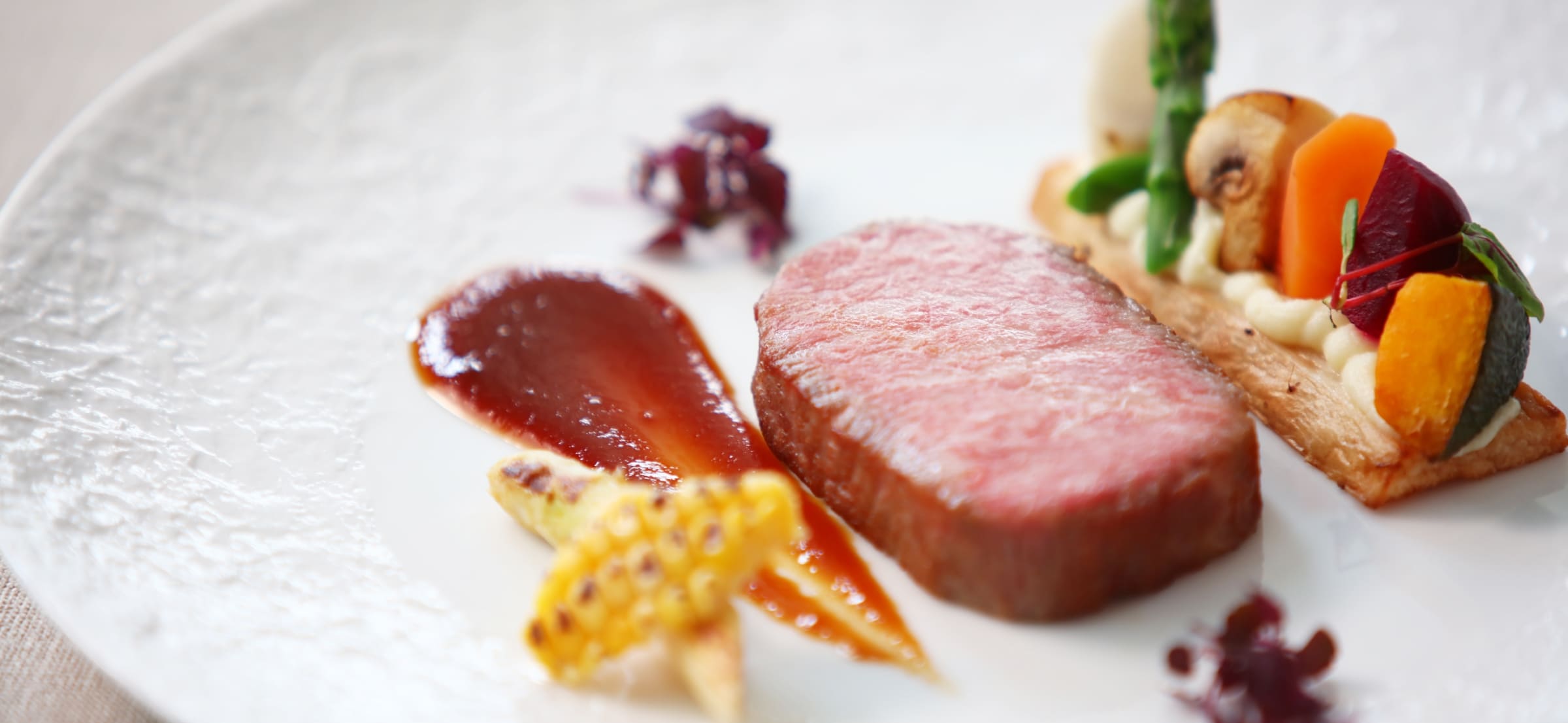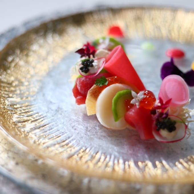 旨味成分にもこだわり、遊び心溢れる彩のお料理たち。